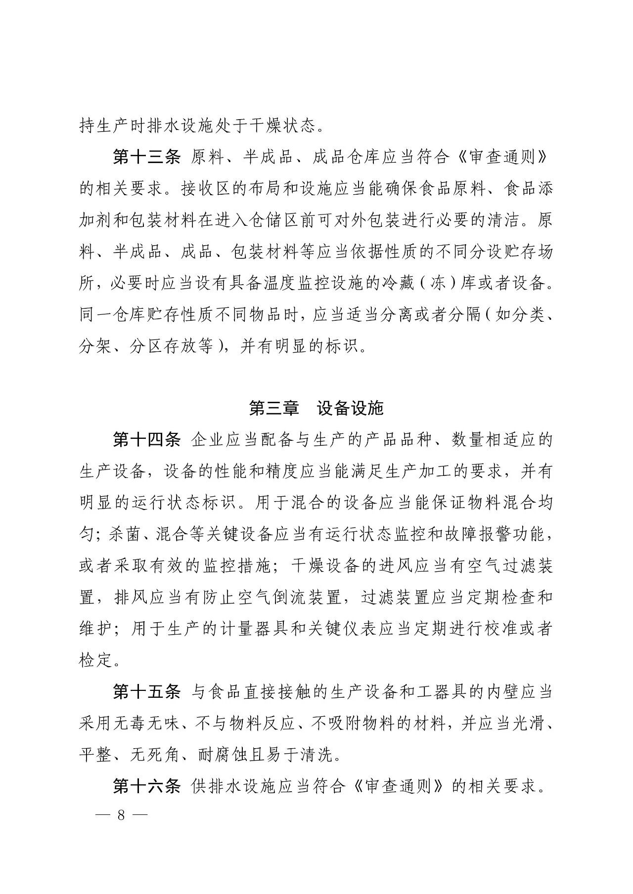 《细则》共7章43条,从生产场所、设备设施、工艺流程、人员管理、制度管理等方面进行严格要求,主要修订了以下内容:
