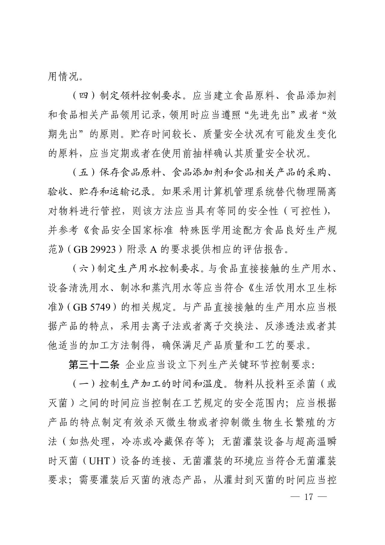 二是按照2023版特医食品良好生产规范,进一步明确作业区环境卫生控制要求和关键设备监控要求;