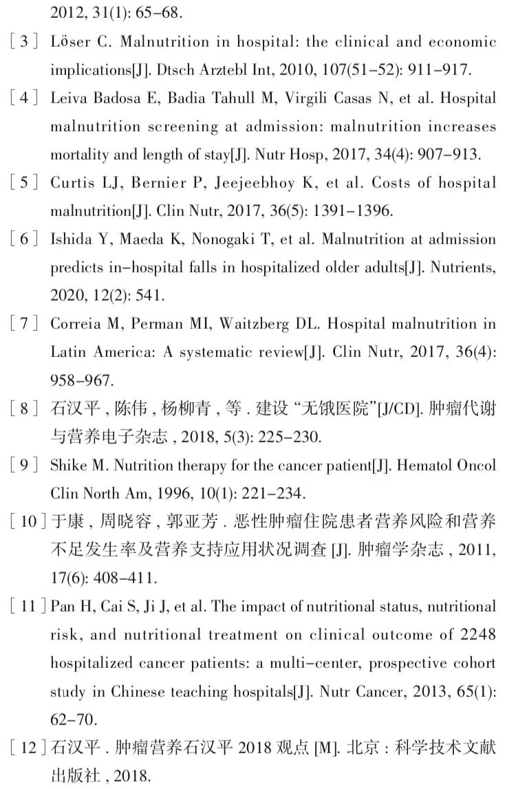 文章来源:王莉,王勇,石汉平,徐建立,宋清坤,李素云.“无饿医院”对营养不良患者管理的作用研究[J].中华普通外科学文献(电子版),2020,14(4):253-256.